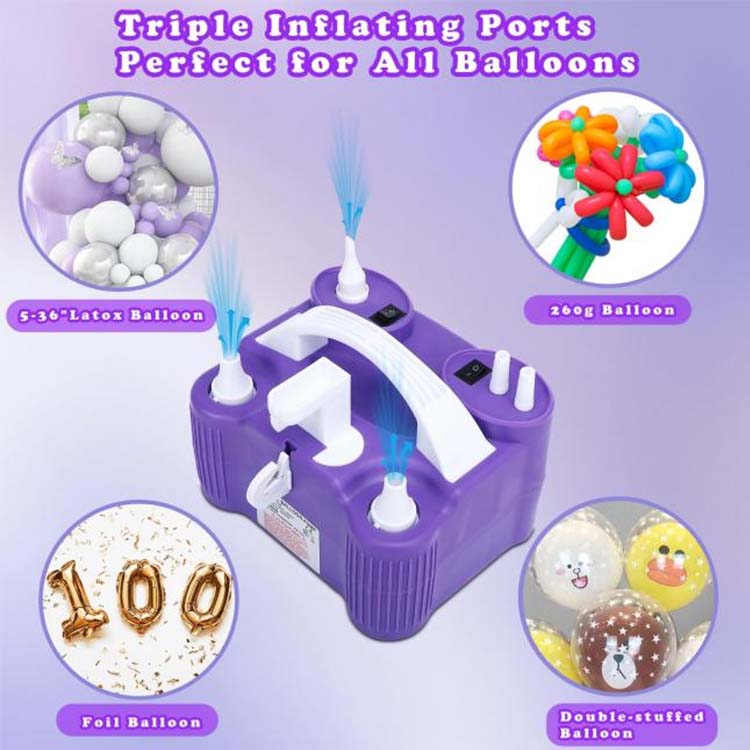 Novo vylepšené 3 v 1 elektrickej balónovej čerpadle Newshine® je vybavený trojitým profesionálnym balónovým dýzovým systémom: 2 okrúhle latexové balónové trysky, ktoré presne zapadajú 5 až 36 1 rozšírená profesionálna balónová dýza nafúkne hliníkové a kovové filmové balóniky, praskajúce balóny, dvojvrstvové nafukovacie balóniky a 260Q/360Q Magic Balloons, čo umožňuje tvorivé zvraty a tvary, ako sú zvierací balóny, kvetinové dekorácie a ďalšie šampióny. Jedno čerpadlo zvláda všetky typy balónov.