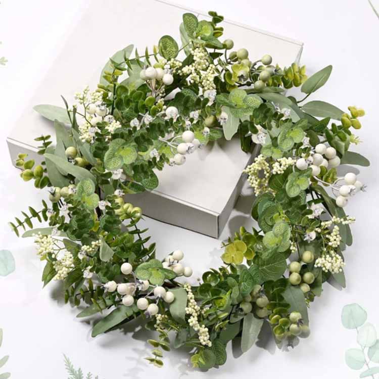 Ozdobný veniec obsahuje listy ako hlavný prvok s rôznymi štýlmi vykladanými rôznymi kvetmi ako ozdobami a celkový tvar je kruhový. Žilnatina listov je jasne viditeľná a vytvára realistický efekt. Odoláva ultrafialovému žiareniu a nevybledne. Je to najlepšia voľba na zdobenie prednej časti domu alebo krbovej rímsy počas Vianoc.