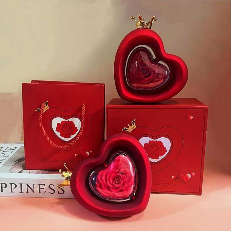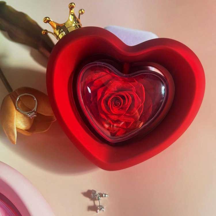 Šperkovnica Rose v tvare srdca používa konzervované kvety triedy A, ktorých farba a textúra sú na nerozoznanie od čerstvých kvetov.