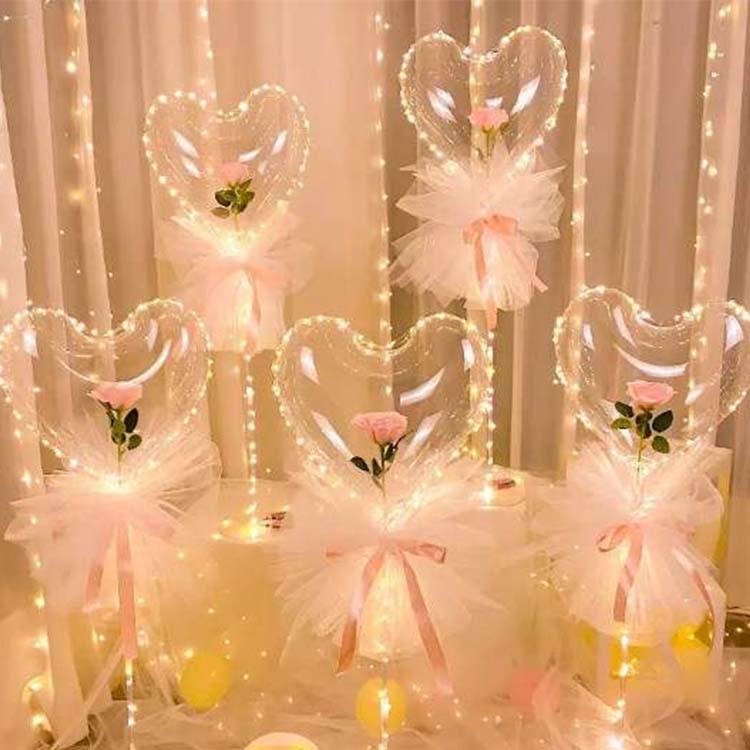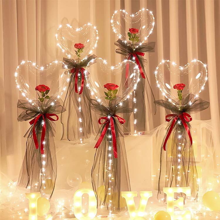Kvalita materiálu: Skontrolujte, či je PVC materiál balónu v tvare srdca hrubý, priehľadný, bez zjavných defektov a zápachu; Ružová tkanina by mala byť realistická, mäkká, svetlá farba a nemala by sa ľahko vyblednúť; Osvetlenie žiaroviek musí byť zjednotené a kvalita skrinky batérie musí byť tiež zaručená, aby sa zabezpečila bezpečnosť používania.