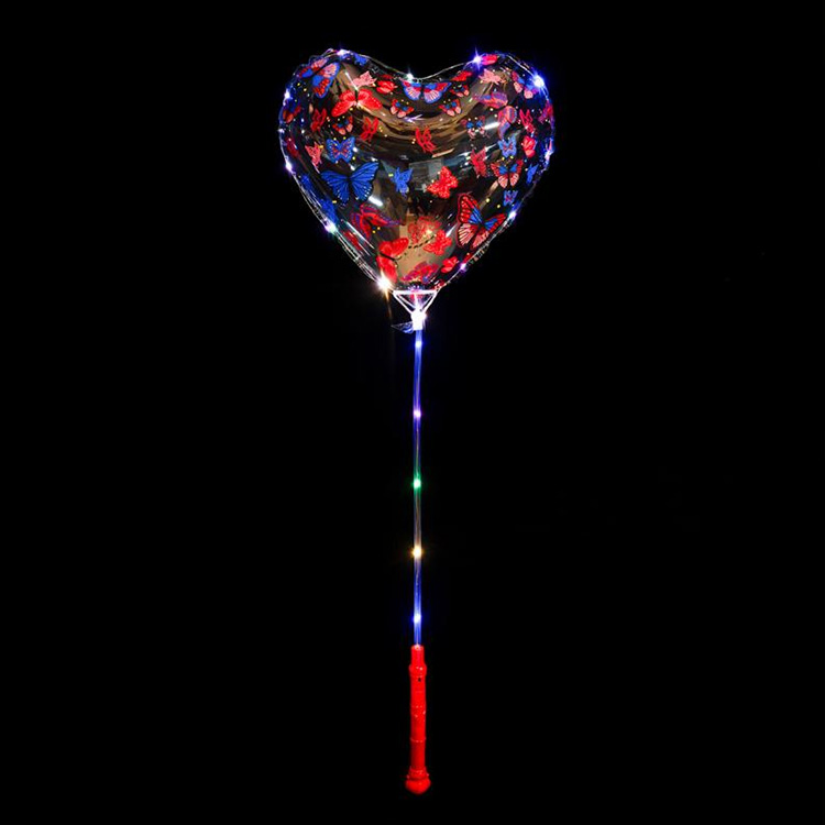 Balóny Bobo s potlačou v tvare srdca často kombinujeme s rúčkami alebo LED svetelnými boxmi. Môžete si vybrať farbu svetla, ktorú potrebujete.