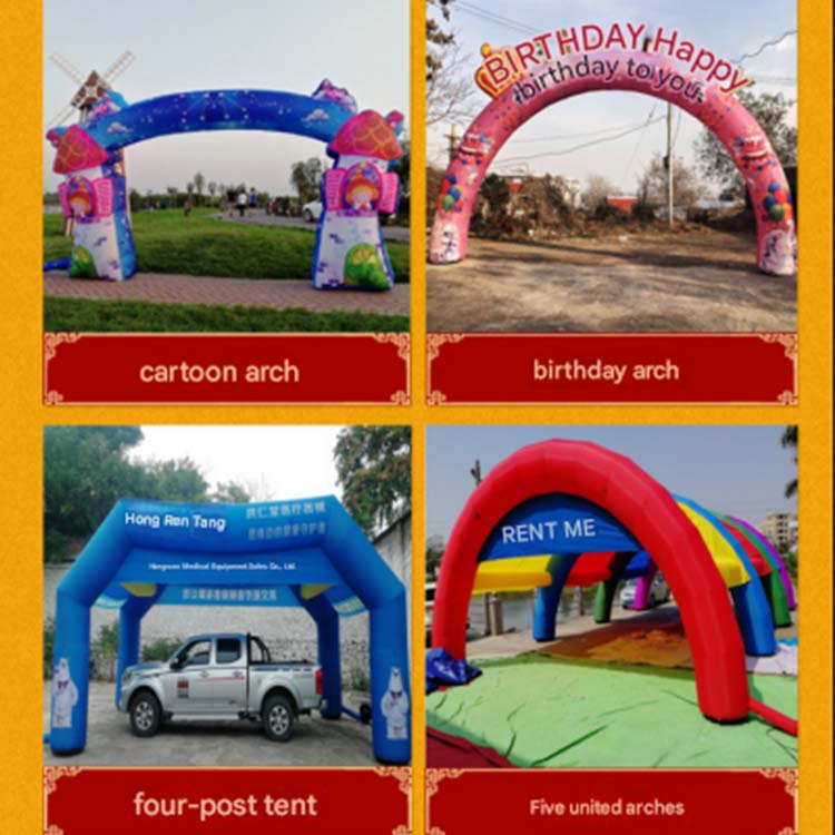 Veľkosť a tvar: Dostupné v rôznych veľkostiach a dizajnoch - klasické zakrivené oblúky, vlastné tvary (ako sú logá, kreslené postavy), dvojité nafukovacie oblúky alebo tematické štýly (svadba, šport, festivaly).