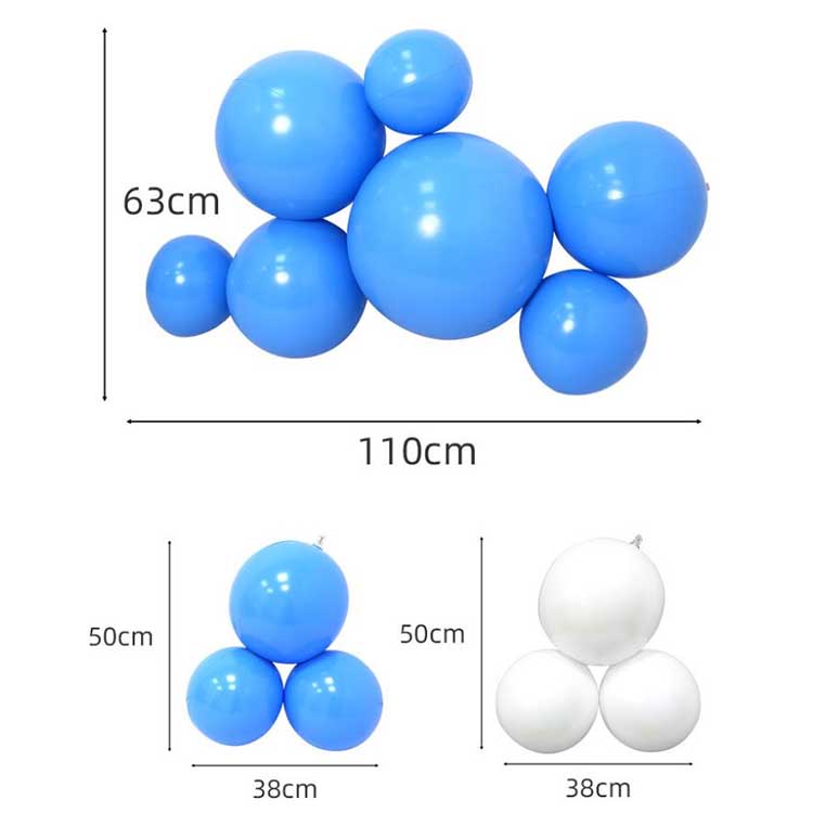 Veľkosť 7-klastrovOpätovne použiteľný balónový kus oblúkaje 63*110 cm, váži 311 g a má veľkú veľkosť. Používa sa pri veľkých podujatiach, na nákupných obchodných predsieňoch a ďalších príležitostiach vo veľkom meradle. V rozsiahlych propagačných aktivitách, ktoré sa konali v obchodaku, boli v predsieni zavesené 7-klastrové jednodielne opakovane použiteľný balónový oblúk. Farebné farby a obrovské tvary môžu priťahovať pozornosť zákazníkov na všetkých poschodiach a účinne zvýšiť popularitu aktivít. Či už ide o malú párty alebo veľkú oslavu, nájdeteOpätovne použiteľný balónový kus oblúkasprávnej veľkosti na pridanie lesk do udalosti.
