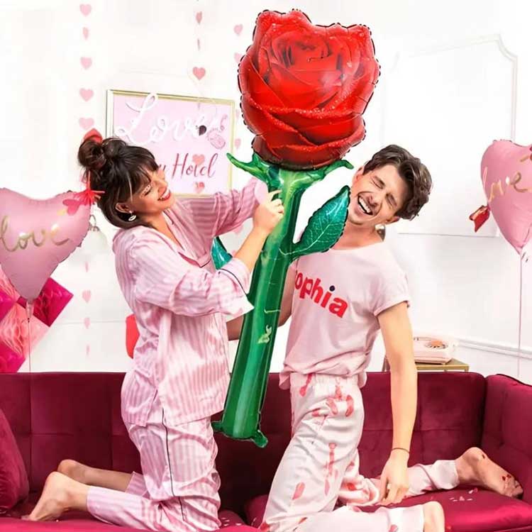 Naše balóny v tvare ruže vyrobené z vysoko kvalitnej fólie majú výraznú textúru, silnú vzduchotesnosť a ťažko sa zlomia. Na rozdiel od bežných balónov sú ich živé ružové tvary atraktívnejšie, vhodné pre všetky situácie a sú veľmi obľúbené u predajcov a spotrebiteľov. Či už je to festival, svadba alebo propagácia značky, získa veľkú pozornosť a predaj.