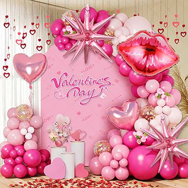 Sada valentínskych balónových girland obsahuje ekologické latexové balóny a žiarivé fóliové balóny určené na dlhodobé používanie. Obsahuje 50-80 latexových balónov v rôznych veľkostiach, plus 5-8 fóliových ozdôb srdiečka/písmená. Súprava pre domácich majstrov obsahuje balónové retiazky, lepiace bodky, stuhu a návod. Jednoduchá montáž pre vnútorné aj vonkajšie použitie.